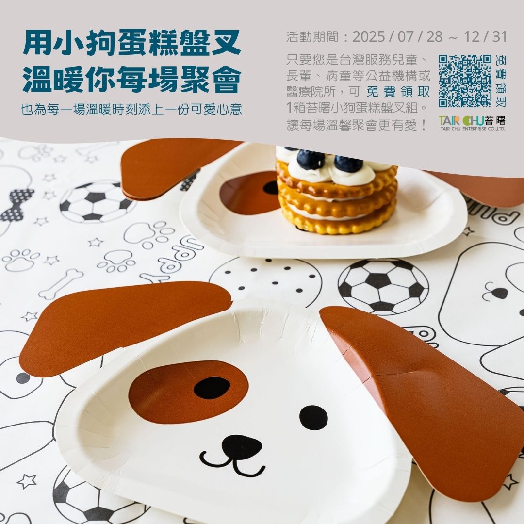 本次活動由苔曙企業主辦,活動期間自 2025 年 7 月 28 日起至 12 月 31 日止,對象涵蓋全台各地的公益團體、育幼院、老人之家及醫療院所等非營利組織。凡符合條件的單位,可透過苔曙企業官方公告的 Google 表單申請,經審核通過後即可免費獲贈 50 組「小狗造型蛋糕盤叉組」,用於生日會、節慶活動或日常聚餐中,為受助者增添更多笑容與儀式感。